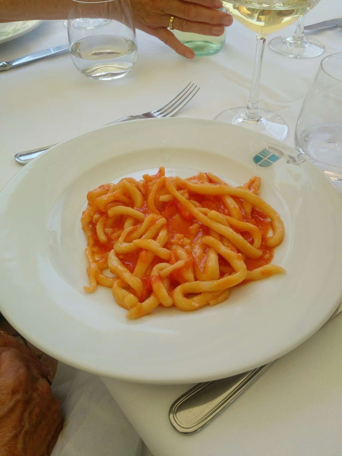 Pici is a typical Sienese pasta in Tuscany. It's hand-rolled like thick fat spaghetti. It's made of flour, water, olive oil and egg.